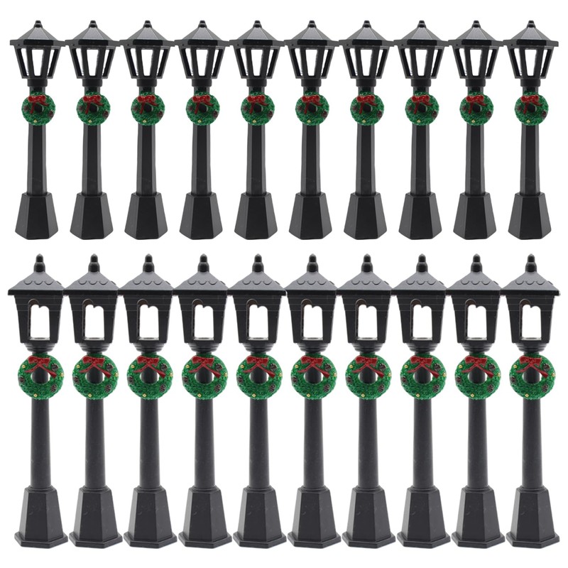 Christmas Lamp Post Village Accessories, 20 Pcs Lantern Posts Decorative Mini Street Lights, Miniature Street Lamp Posts for DIY Dollhouse Christmas Village Display (Wreath Style, 20)