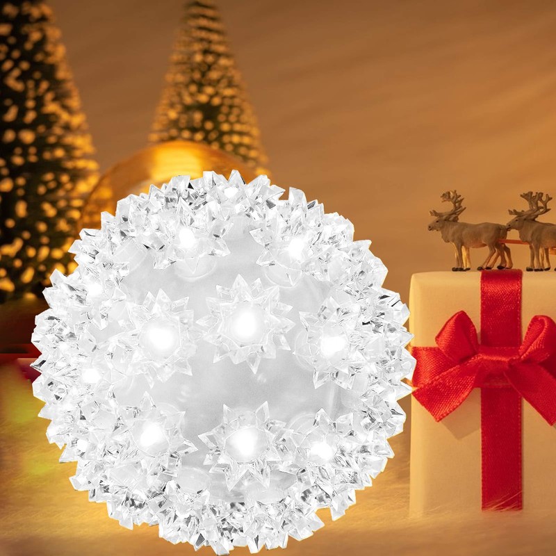 - Energy efficient and practical : Christmas hanging ball lights are lit with LED lights and life span of more than 25,000 hours. Durable structure and pretty size, a totally considerable gift lights for your family, friends or yourself