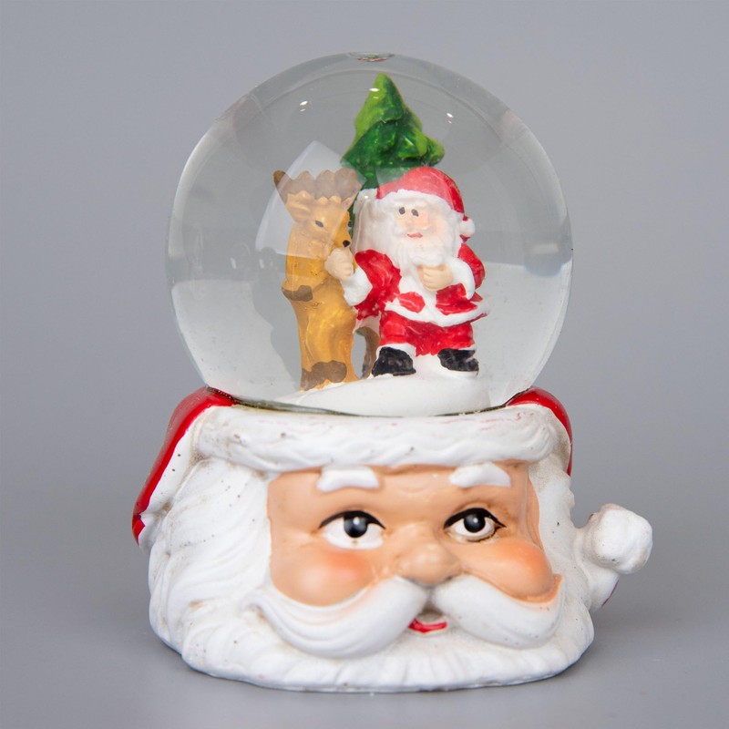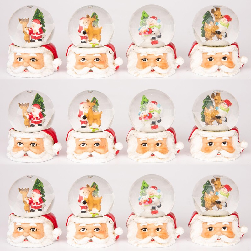 Christmas Mini Snowglobe Water Ball Snow Dome Features Santa,Reindeer,Snowman Scene Resin Santa Face Base - 5.5x7cm - Christmas Table Mantel Decorations
