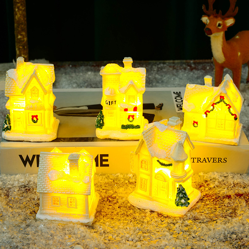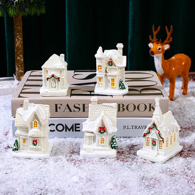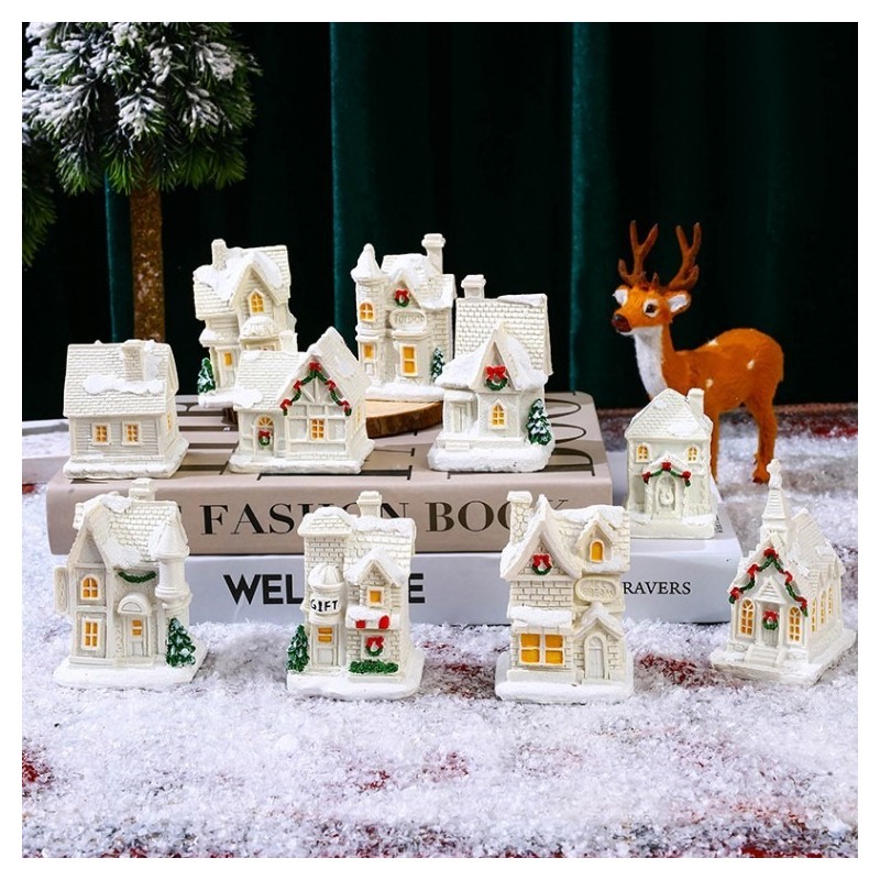 Christmas Miniature White Elastic House Landscape Decor Gift lf1028 Free Size / E 2ea