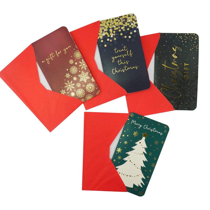 - 🎅 VIBRANT ROYAL COLOURS: 4 Different elegant designs in Red and Golden Sparkling Colours. Beautifully Designed Gifting Envelope / Greeting Card Voucher Envelopes peel and seal. Wrap yourself up in a world of festive magic with these wallets small envelopes.