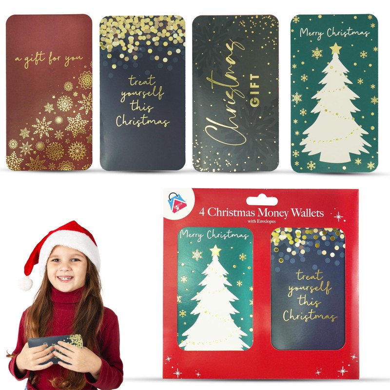 - 🎅 PACKAGE INCLUDED: Customer will get 4x Fancy Money Wallets for Christmas. Gift cards come complete with plain white envelopes.