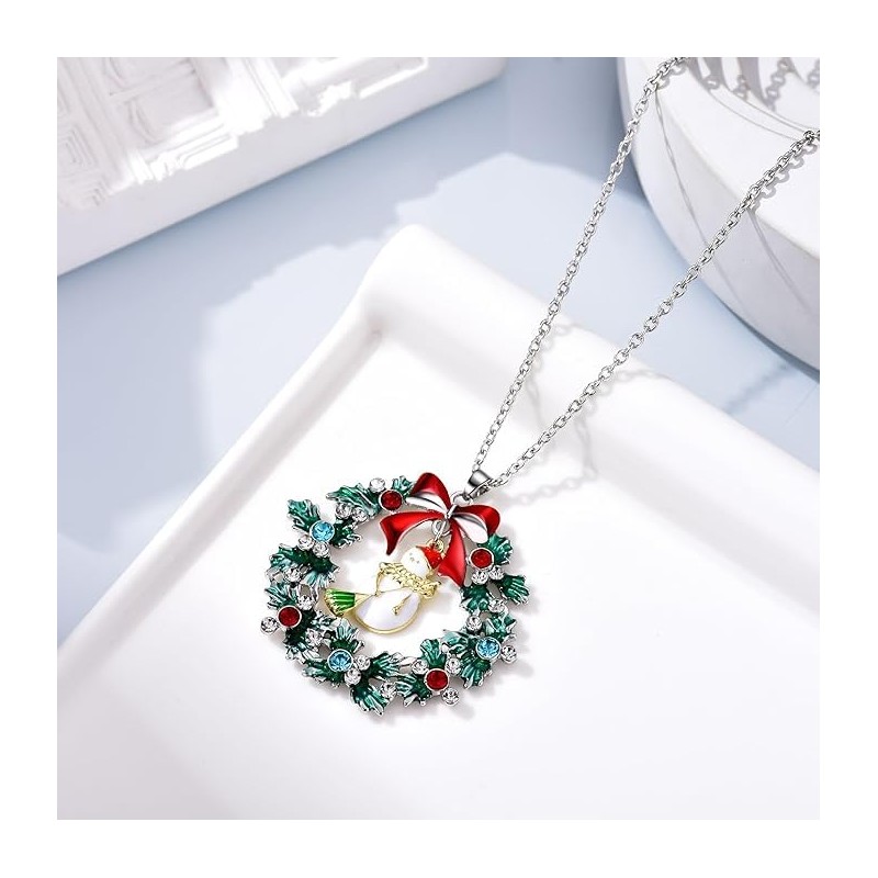 Christmas Necklaces Pendant for Women Xmas Wreath Pendant Necklace with Snowman Chain Jewelry Gift