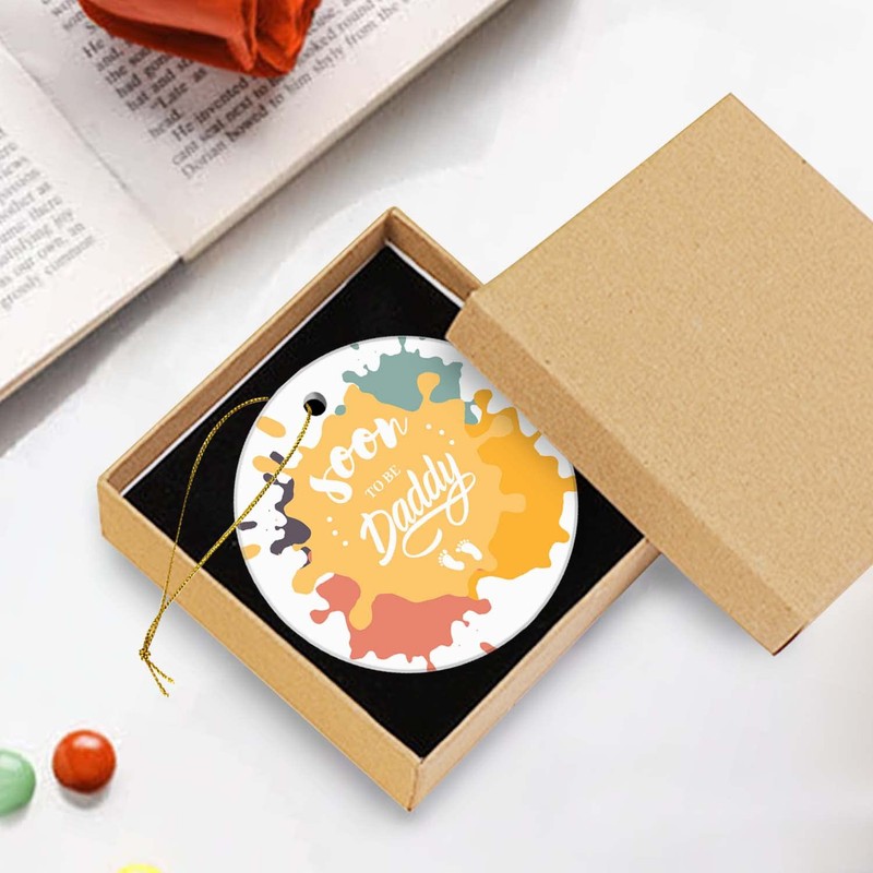 Christmas Ornaments Gift for Dad Keepsake Christmas Ornament 2022 Xmas Tree Decorations Ceramic Round Ornament with Gift Box 2.95in(Soon to Be Daddy)