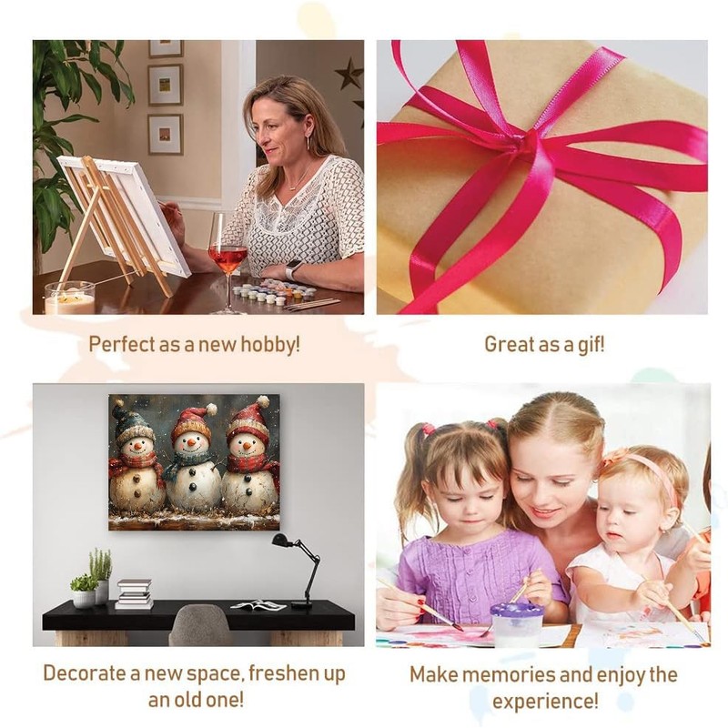 - 【Christmas paint by numbers】DIY Christmas paint by numbers can give full play to your creative talents and exercise your concentration and patience. You can also complete this craft art with your family or friends, which will increase your intimacy with them and make your life more interesting.