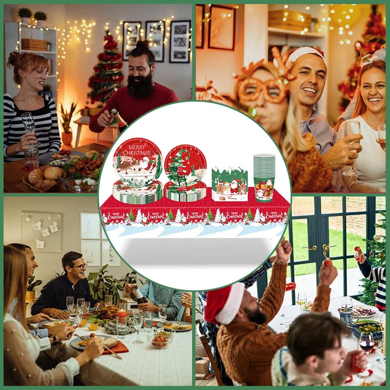 - Material: All Christmas Party Tableware Accessories are food safe, non-toxic . They are made of food grade paper, safe for children.
