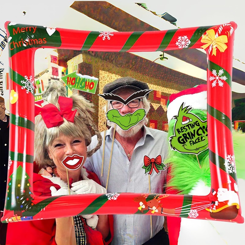 - 🌟Ideal size: Christmas Inflatable Selfie Frame Selfie Props Package Includes and Size: 1xChristmas inflatable photo frame decorated (75cm*65cm/29.5inch*25.6inch)30 x exquisite photo props.