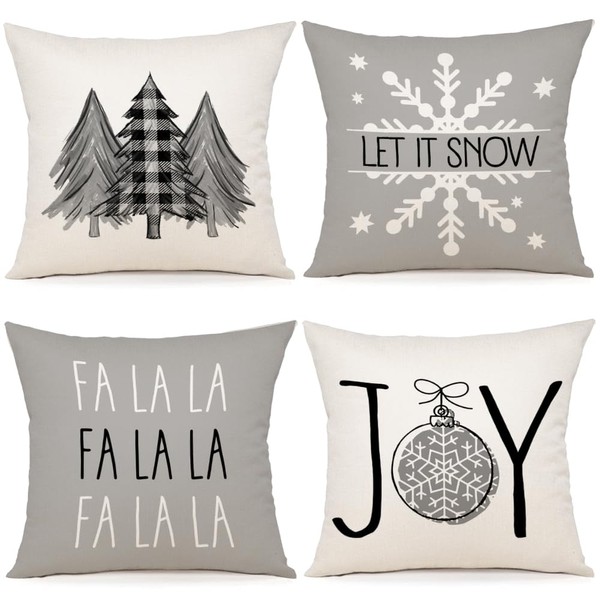 Christmas Pillow Covers 20x20 Set of 4 Christmas Pillows Farmhouse Christmas Decorations Rustic Outdoor Throw Pillows Linen Cushion Covers for Couch Sofa Docor