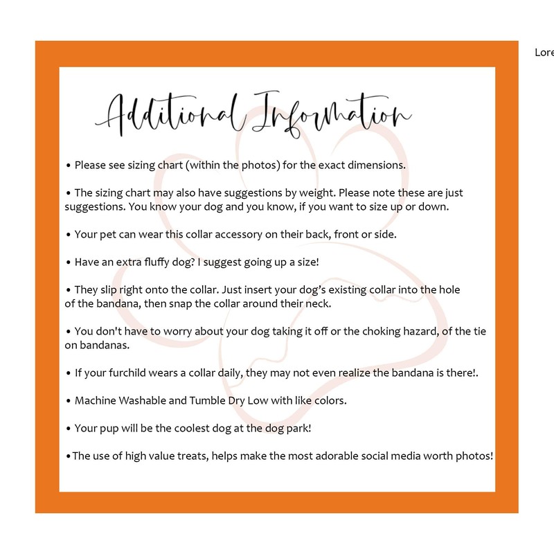 This listing is specific for the size indicated in the title. Please see sizing chart (within the photos) for the exact dimensions. There are other sizes available in a separate listing for this bandana.