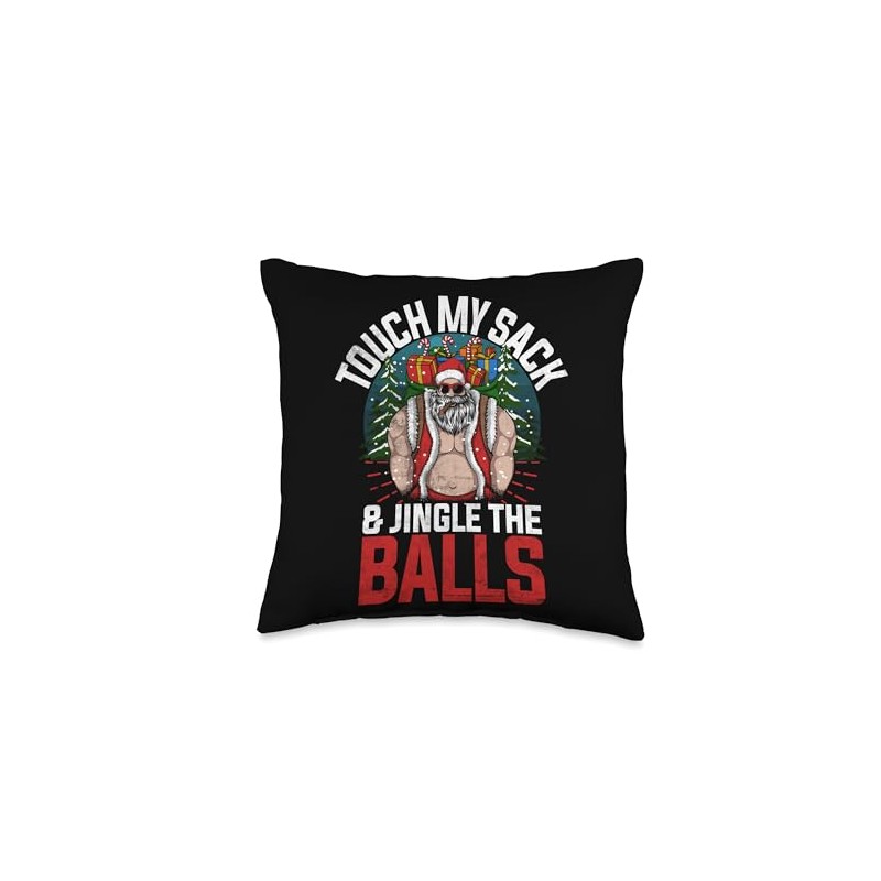 Christmas Present & Santa Claus Christmas Gifts Santa Claus Touch My Sack & Jingle The Balls Funny Christmas Throw Pillow, 16x16, Multicolor