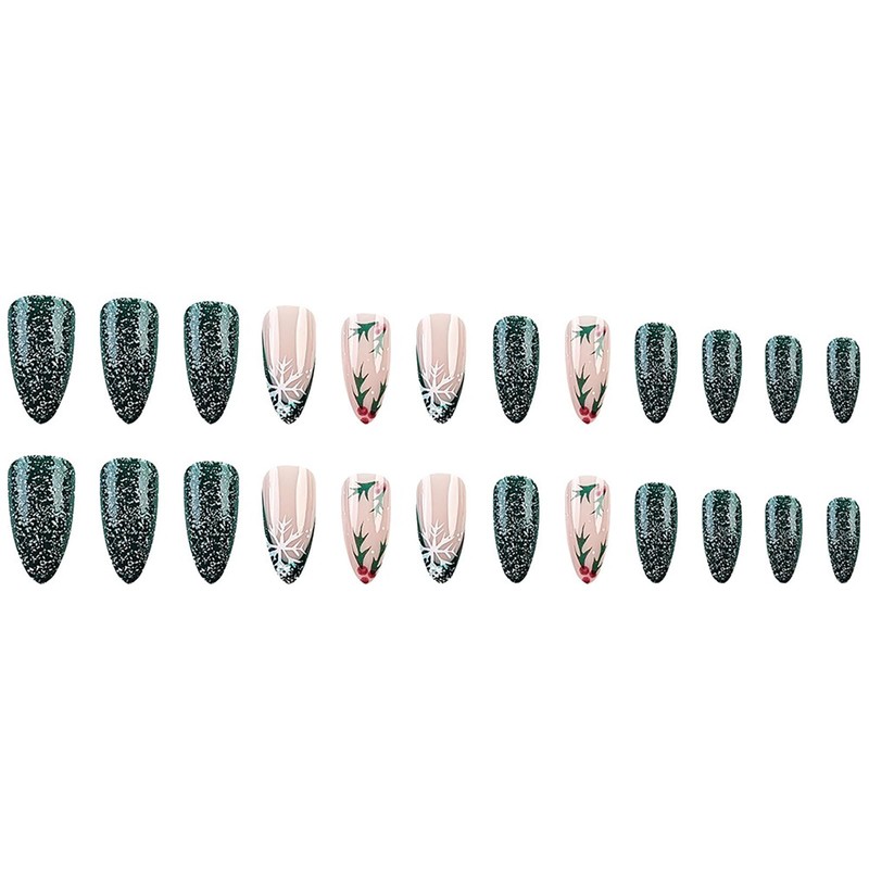 Christmas Press On Nails Almond Green Glitter Fake Nails French False Nails With Snowflake Christmas Nails Design Christmas Press On Nails For Women Christmas Nails Cute Christmas Nails 24pcs