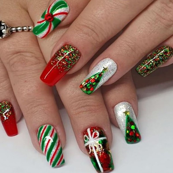 - 【Christmas nails press on advantage】 press ons easy to wear and unloading Instead of spend lots time and money at nail salon, acrylic nails glue on, you can change you nails style in 15 minutes anytime and anywhere,suitable for experienced manicurists and learners.please note:The stick on nails fake nails will stay longer if you clean your nails before use, and avoid water within the first hour of wearing.