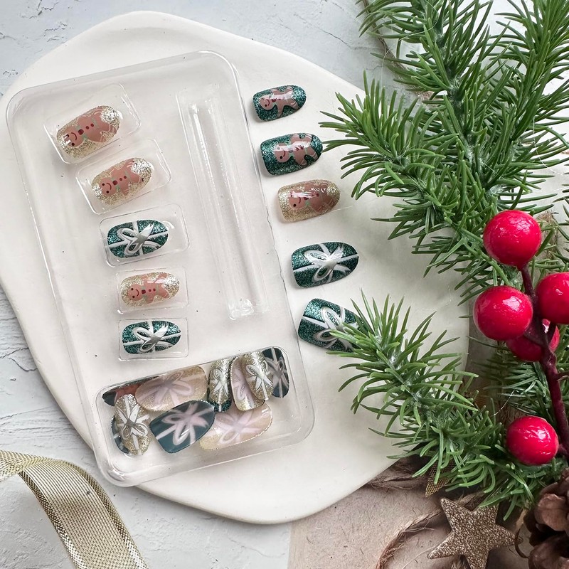 - 【Material】These xmas fake nails with designs are made of healthy ABS material, no irritating smell, higher gloss, not easy to break. It is harmless to your body and nails, and provides you with a comfortable and wonderful experience