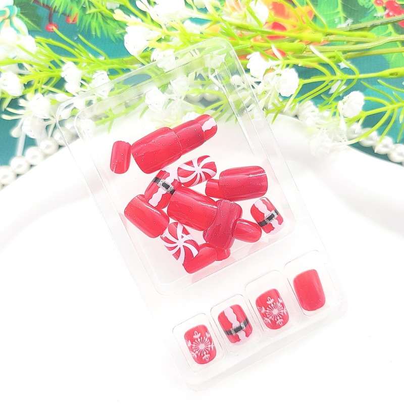 Product DetailsYou'll get a christmas press-on nail kitHow to use the product?1. Choose the right nail art piece.2. Use a file to polish the natural nail, then wipe it clean with alcohol cotton.3. Stick the jelly glue on the false nails, press the jelly glue, and then tear off the transparent mold.4. Stick the fake nails on the appropriate fingers and press for 5-10 seconds.5. If you want the nails to last longer, please bring your own nail glue.How to remove Christmas nails?1. Fill a basin with warm water and soak the fingernails in warm water for 3-5 minutes (warm water soaking is only suitable for nail with jelly glue).2. Wipe the water with a cloth, and then gently lift it from the edge of the nail with a nail stick.3. Use a nail stick to remove the jelly glue on the nail tips, save it and use it next time.18. For nail tips with glue, you need to use a dissolving agent to remove it (nail tips with glue cannot be reused)Note: Due to the different cameras and lights used for shooting, the nail products will have a little color difference, which is normal.