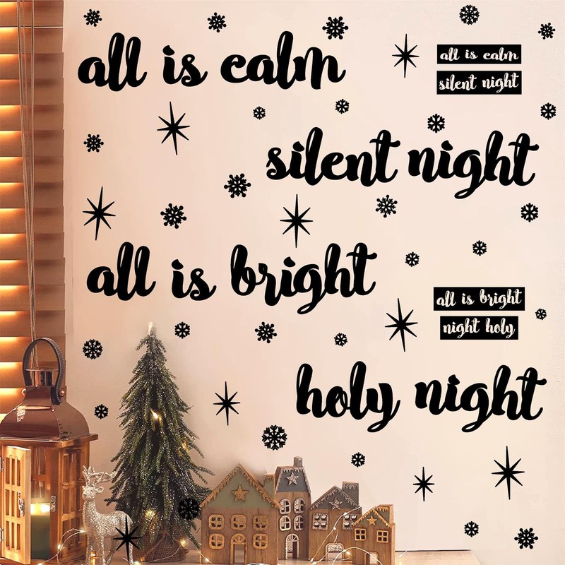 Christmas Quote Wall Stickers All is Calm All is Bright Wall Stickers Vinyl Floor Stairs Decals Christmas Eve Xmas Snowflake Wall Stickers Silent Night Holy Night Holiday Party Decoration