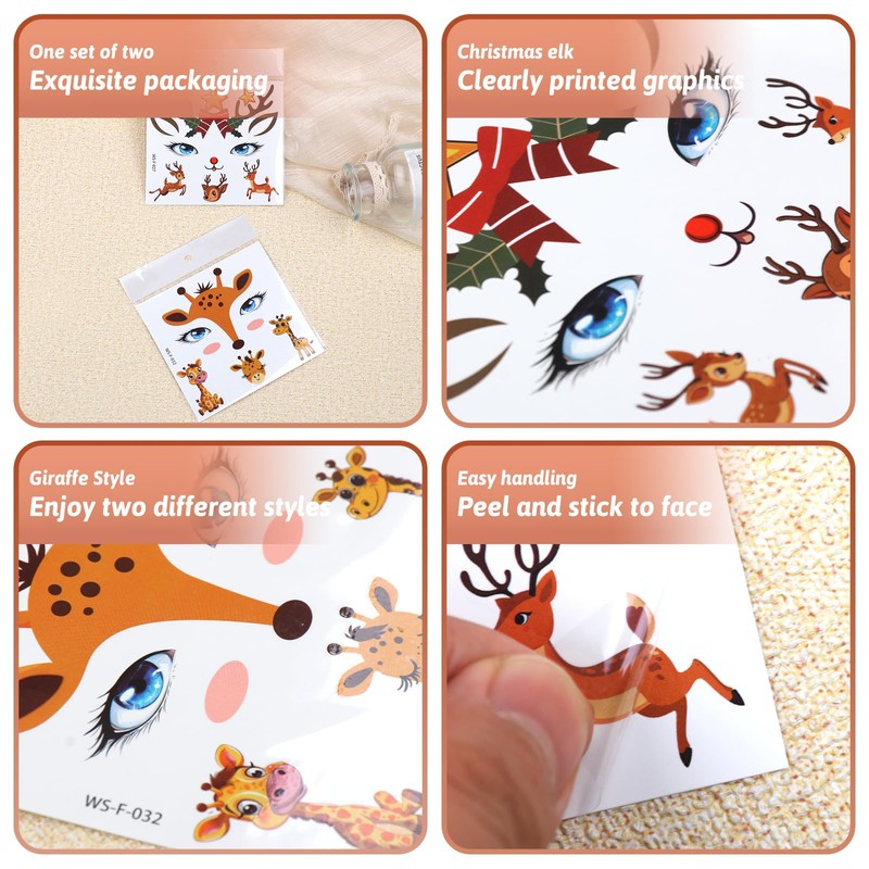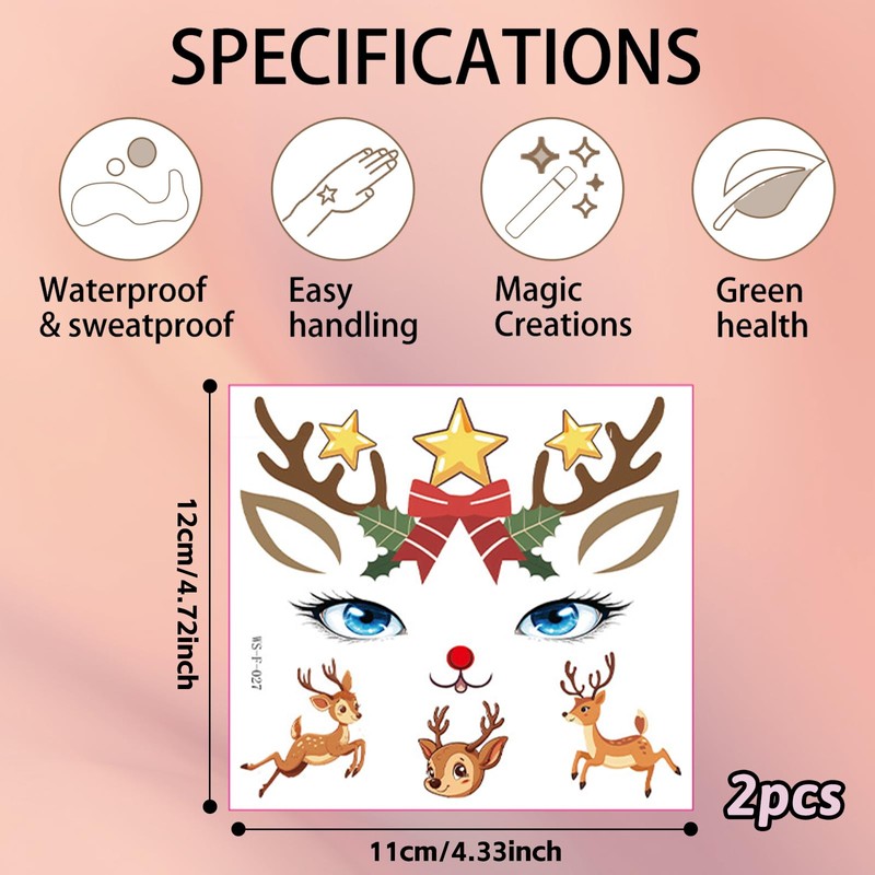 - π ππ¬ππ’π―π πππ’π§ππππ« πππ¬π’π π§π¬: This set of 2 Christmas temporary tattoo stickers features adorable reindeer designs that are perfect for adding a touch of holiday cheer to your Christmas cosplay costume.