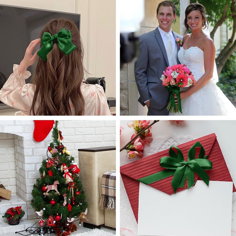 - HIGH QUALITY: The green satin ribbon is made of polyester fiber with smooth surface and no wrinkles,soft and easy to tie,luxury,well-made,no crease at both ends,no threads will fall out,luxurious touch,excellent texture,glossy surface color,long-lasting color,rolled packaging,ribbon for flower bouquet is easy to store,green ribbon for christmas tree,valentine ribbon,valentine's ribbon,double faced satin ribbon,green ribbon for flowers bouquets is good quality,reusable.