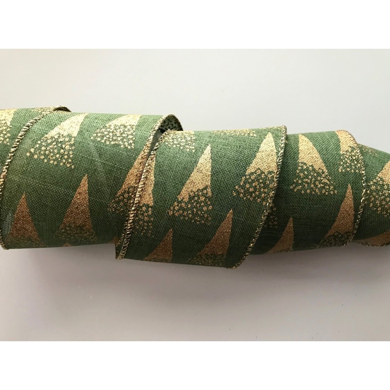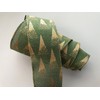 Christmas Ribbon, Green with Gold Trees, 2 1/2" Wide, Wired Edge, 5 YARDS