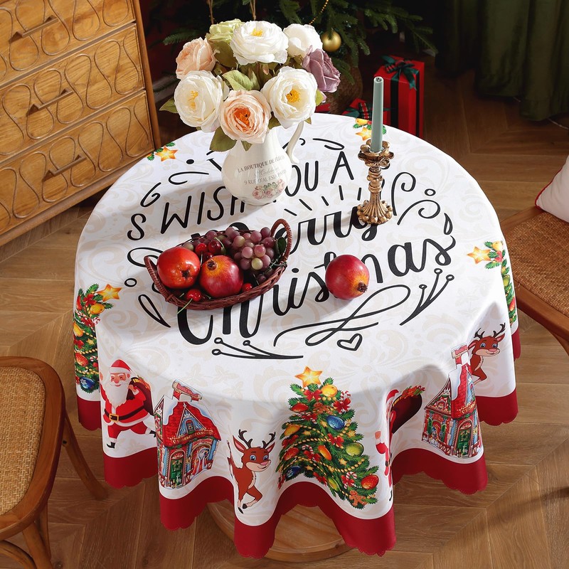 - 🎅Round Christmas Tableccloth: Our christmas table covers have rich colors like red and white, and have the most awaited christmas patterns like merry christmas, xmas tree, reindeer, snowflakes, Christmas flowers and many more, perfect for enhancing the decorations of your new year and christmas party eve.