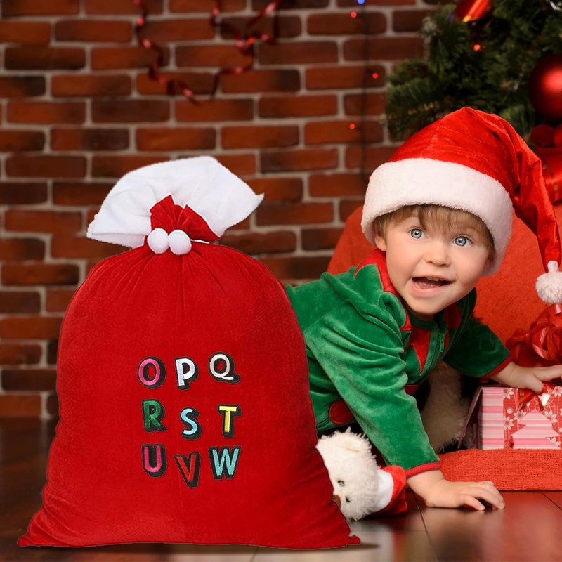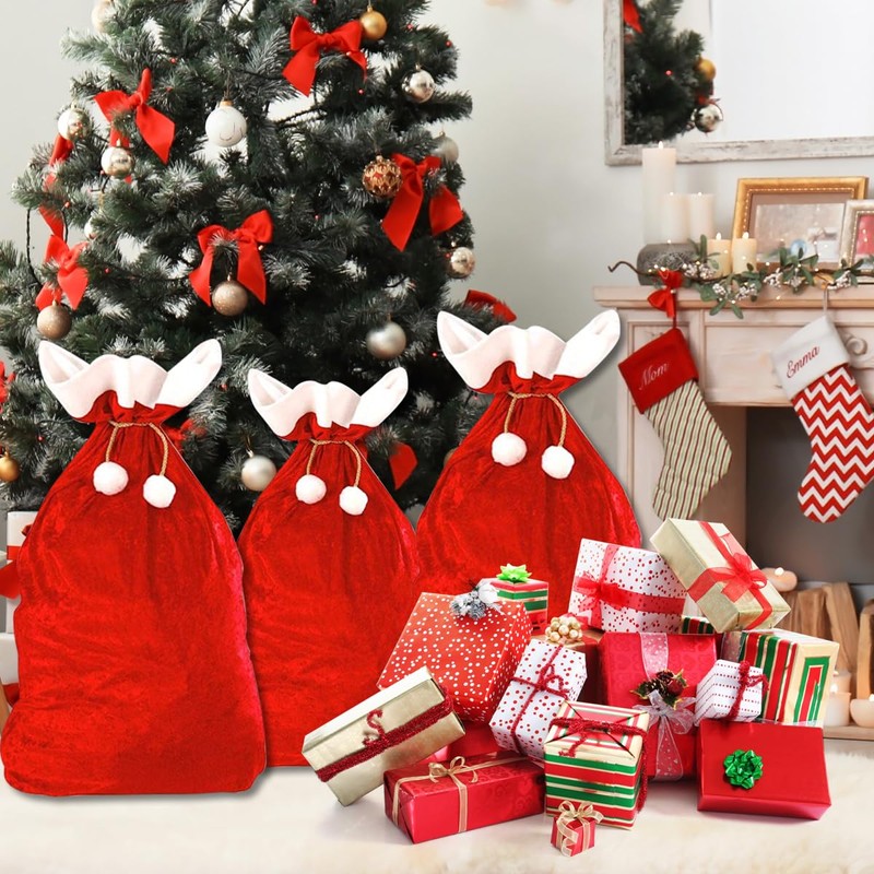 - FESTIVE MOOD This Santa bag impresses with elegant red velvet fabric and decorative pom poms. It is perfect for children and adults who want to experience the joy of opening Christmas bags
