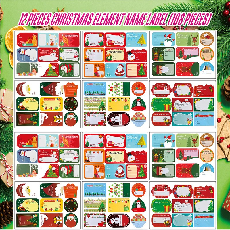 Christmas Sealing Sticker Christmas Stickers Labels Christmas Name Seal sticker12 Pieces of 108 Pieces, Christmas Element Name Label Christmas Label Stickers Decorate Christmas Accessories