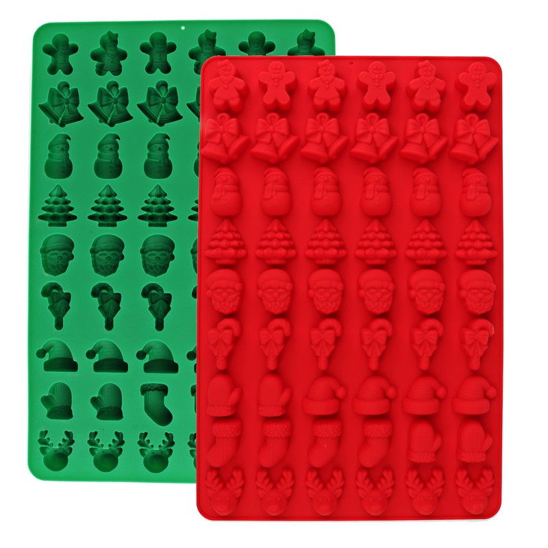 Christmas Silicone Candy Molds, 54-Cavity Mini Christmas Mold Shaped with Christmas Tree, Santa Claus, Gingerbread Man for Chocolate, Candy, Fondant, Cupcake Decorations, Gummy, Wax Melt (2)