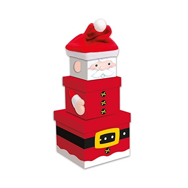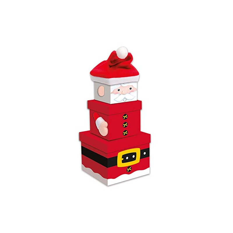 Christmas Small 3 Piece Stacking Nested Gift Box Set Santa Design