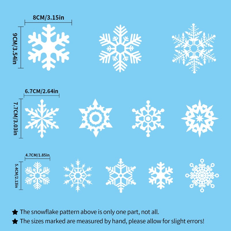 - ❄️DECORATE TOGETHER THIS CHRISTMAS: These snowflake stickers are a great gift for children who can decorate their windows with a variety of snowflakes to create a winter wonderland. Have a wonderful Christmas holiday together! If you have any questions about Christmas window stickers, please feel free to contact us - 24 hour fast response!
