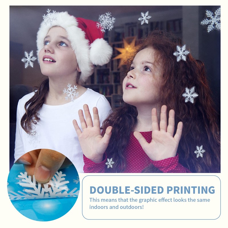 - ❄️POPULAR CHRISTMAS SNOWFLAKE DECORATION: Christmas decoration window stickers are made of high quality PVC material. Smooth and sturdy, they are reusable! Also features two-sided printing, meaning the pattern looks the same from inside and outside! Perfect for Christmas decorations!