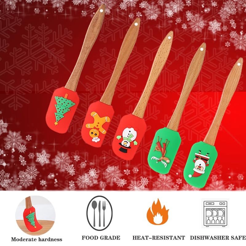 Christmas Spatula Set, 5 Pcs Kitchen Christmas Silicone Spatula Set with Wood...