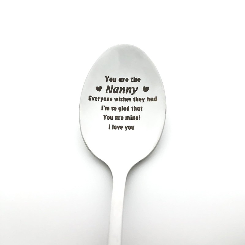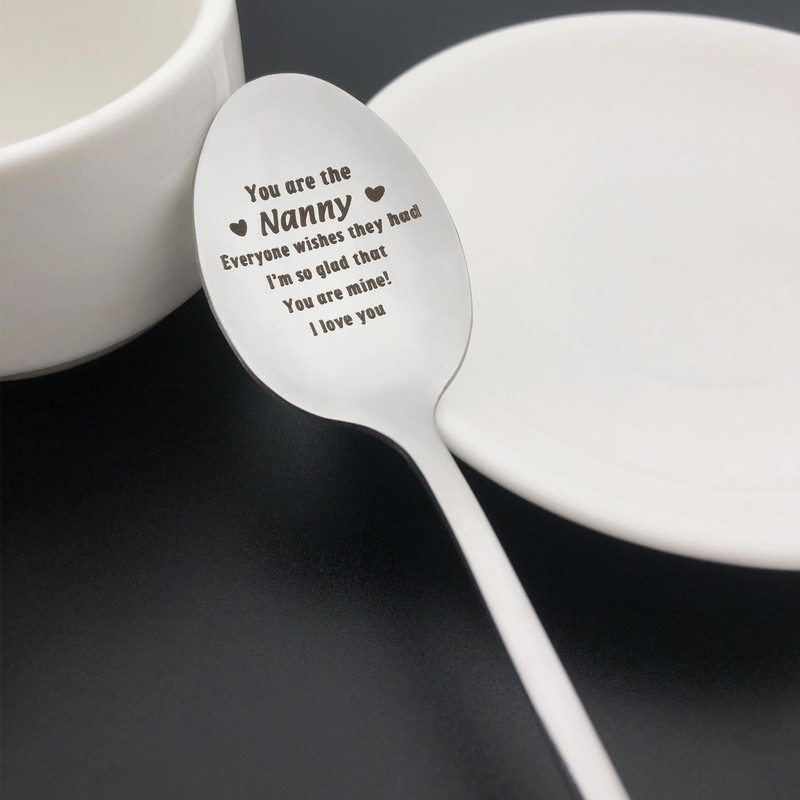 • NANNY GIFTS FROM GRANDKIDS: Engraved as “You are the Nanny everyone wishes they had I'm so glad that you are mine!I love you”, This spoon is a great gift for nanny, grandma, grandmother, gigi, mimi, granny, grammy, nana.