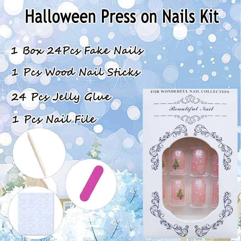 - Christmas False Nails Set: You will get 24pcs Short Christmas press on nails short in 12 sizes,1 piece mini nail file, 24 jelly glues stickers and 1pc wooden stick for removing false nails tips,no need to buy other things, you can get the nail salon-like effect