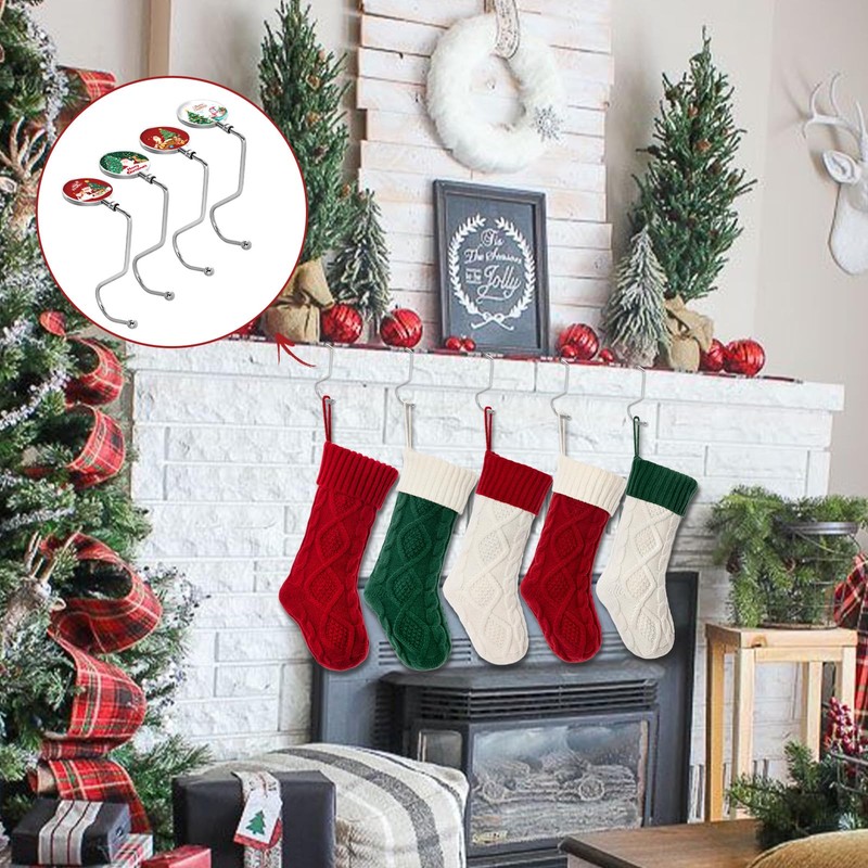 - 🎄🎄【Festive Design & Multi-Use】: Brighten holidays with these stocking holders for mantle! UV-printed Santa/Christmas tree patterns make them perfect as stocking hanger, stocking hooks for mantle, or garland hangers for mantle—hang Christmas stocking, dog Christmas stocking, or garlands. Beyond Christmas mantel decor, they work as purse hooks or bag holders for daily use.