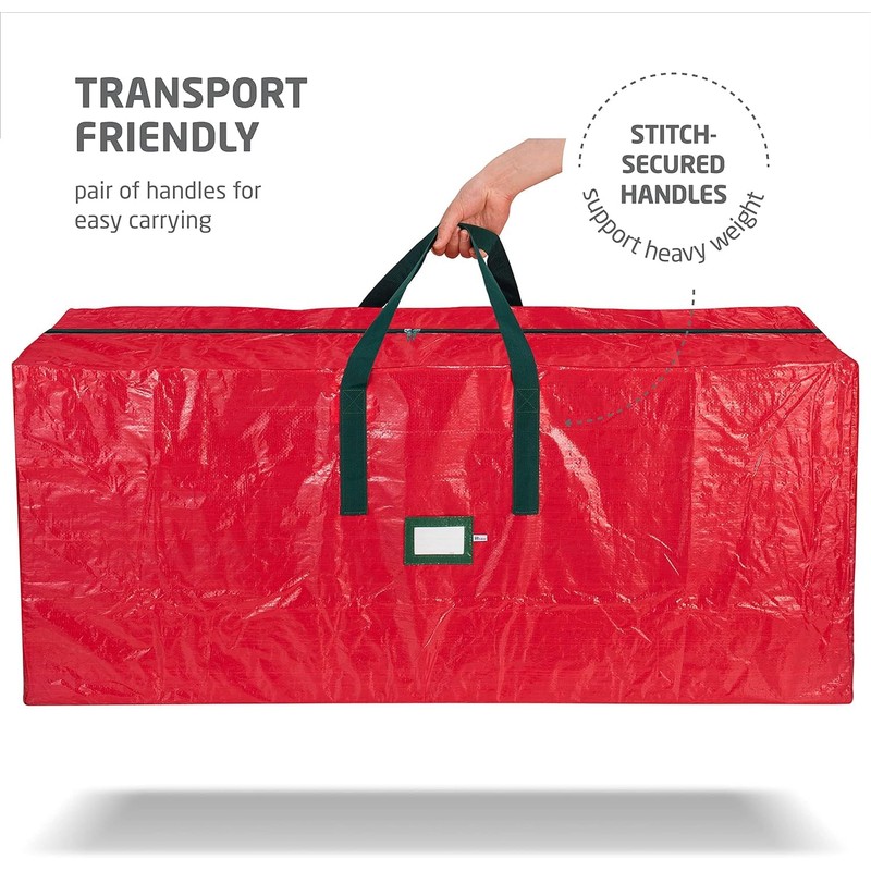Christmas Storage Bag - 9ft Polyethylene Christmas Tree Box, Triple Reinforced Handles & Dual Zipper, Includes Card Slot for Easy Identification Red