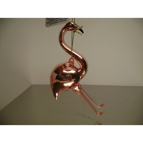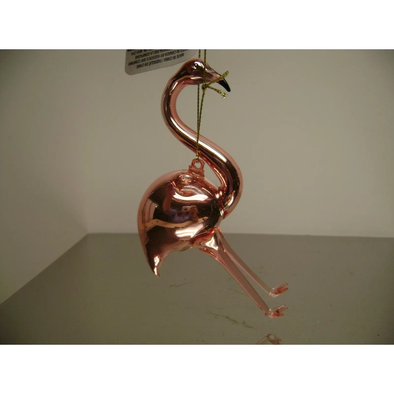 Christmas Street PINK GLASS FLAMINGO ORNAMENTS SET 6