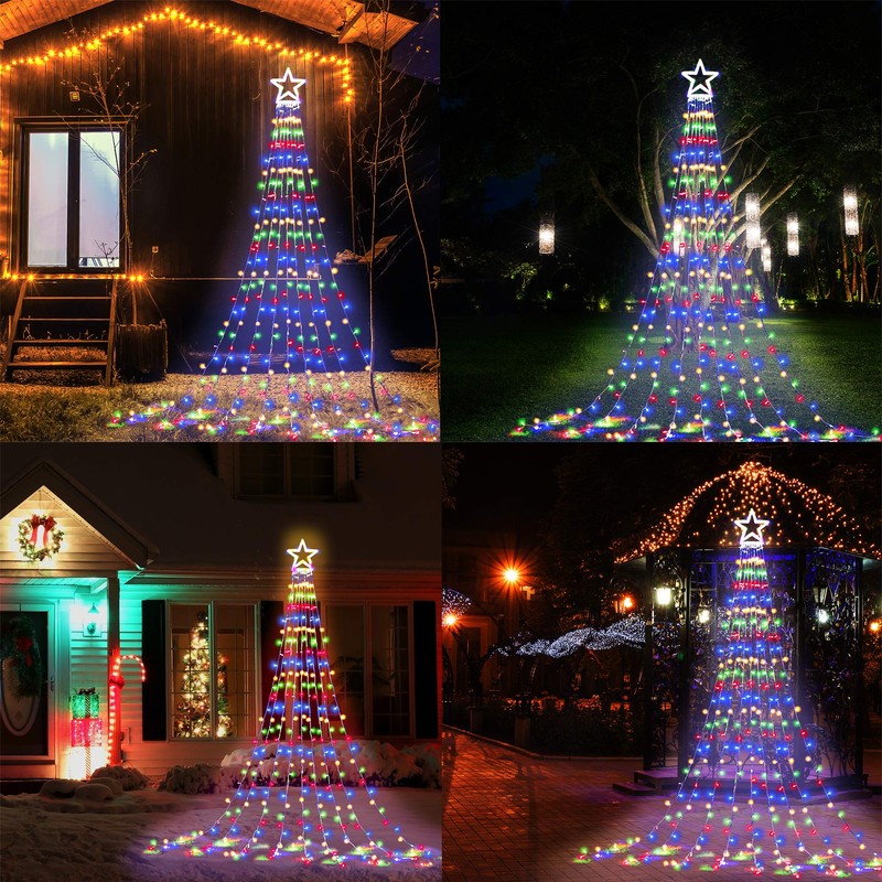 - [Safe Christmas Lights & Easy to Install]- To avoid the topper lights getting hot while lightning, we designed a transformer on the light to transform 125V into 29V. UL LISTED, safe to touch, without worrying kids get an electric shock while playing near the lights.Easy to install:Just hanging the big star on an exterior wall, tree or eaves then you can hang or just make the 9 string lights as you want