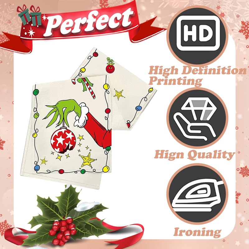 - [Premium Material]:Christmas table runner made of polyester,soft durable and machine washable,gentle cycle,tumble dry low.The soft,skin-friendly,wrinkle-resistant fabric makes this table runner more stylish,elegant,noble and smooth