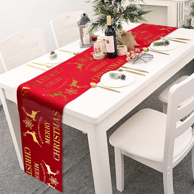- Bronzing Printing: The Xmas table runner is designed with bronzing elk snowflake patterns and Merry Christmas letters, very gorgeous and delicate for Christmas table decorations to add festival atmosphere for New Year, holidays.