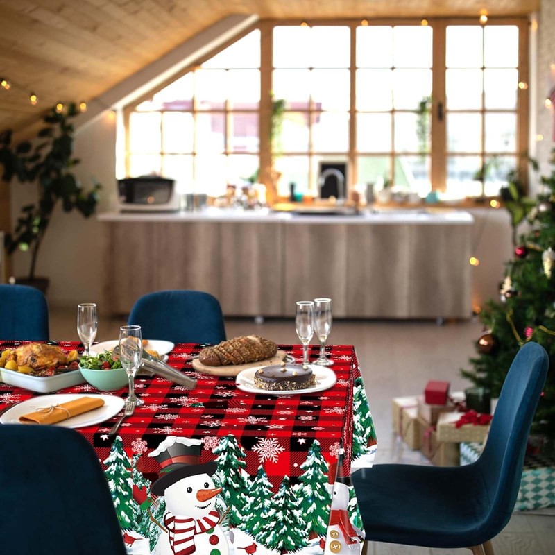- Application: This Christmas tablecloth can be used for large dining occasions indoors and outdoors, e.g. in the kitchen, dining table, buffets, picnics, weddings, parties, cafes, etc.
