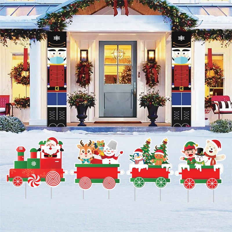 - Christmas Train Yard Sign Cutouts with Stakes are Engineer Grade and Professional Appearance.