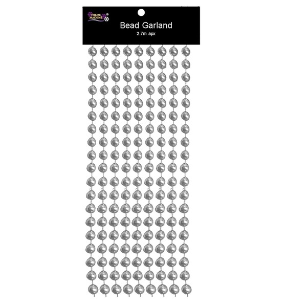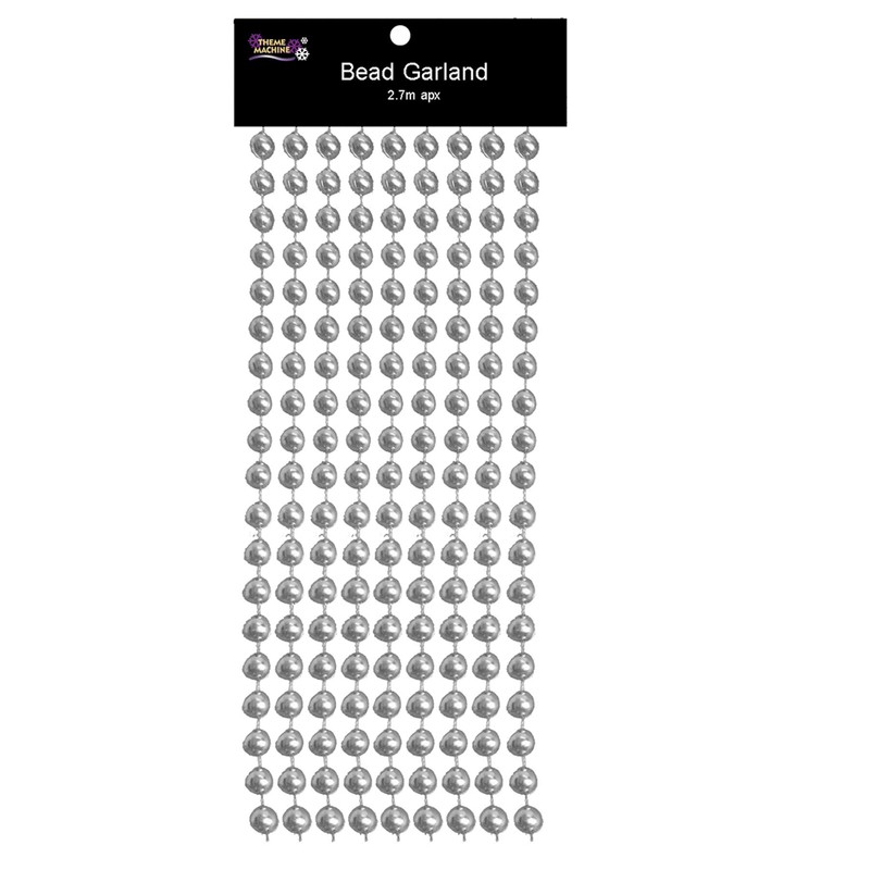 Christmas Tree Decoration 2.7 Metre Chunky Bead Garland - Silver