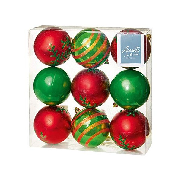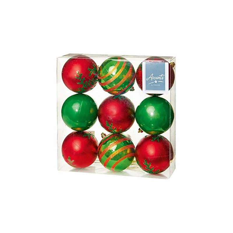 Christmas Tree Decoration - 9 Pack 80mm Baubles - Red and Green