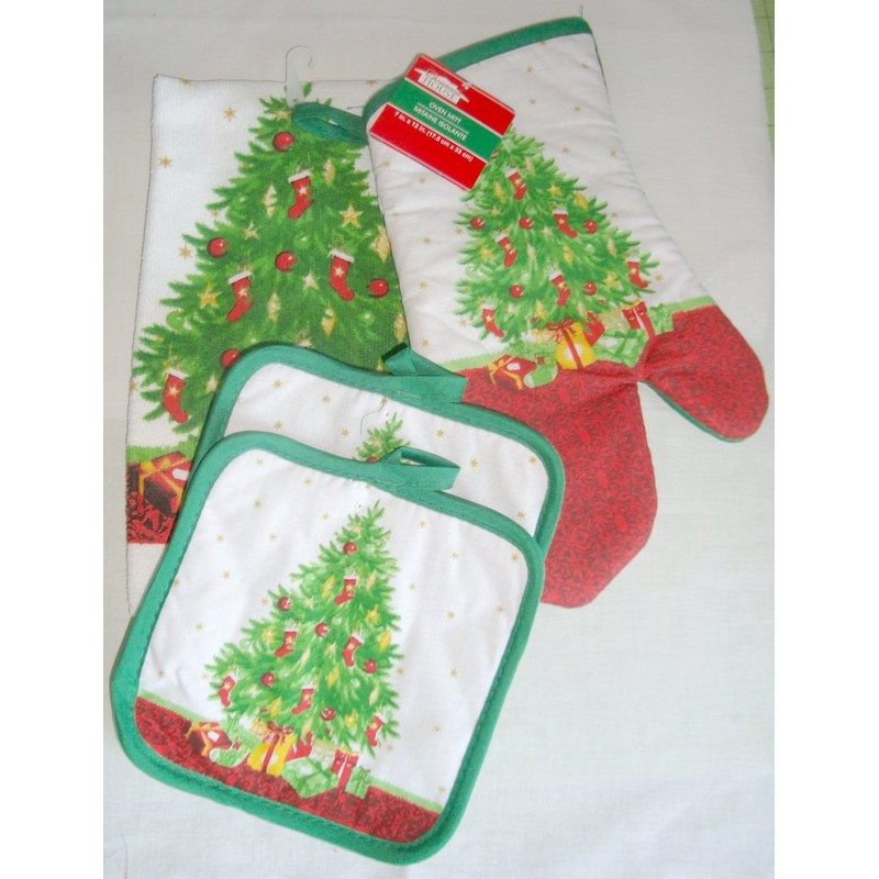 Christmas Tree Design 4 Piece Towel,pot Holder,oven Mitt Set