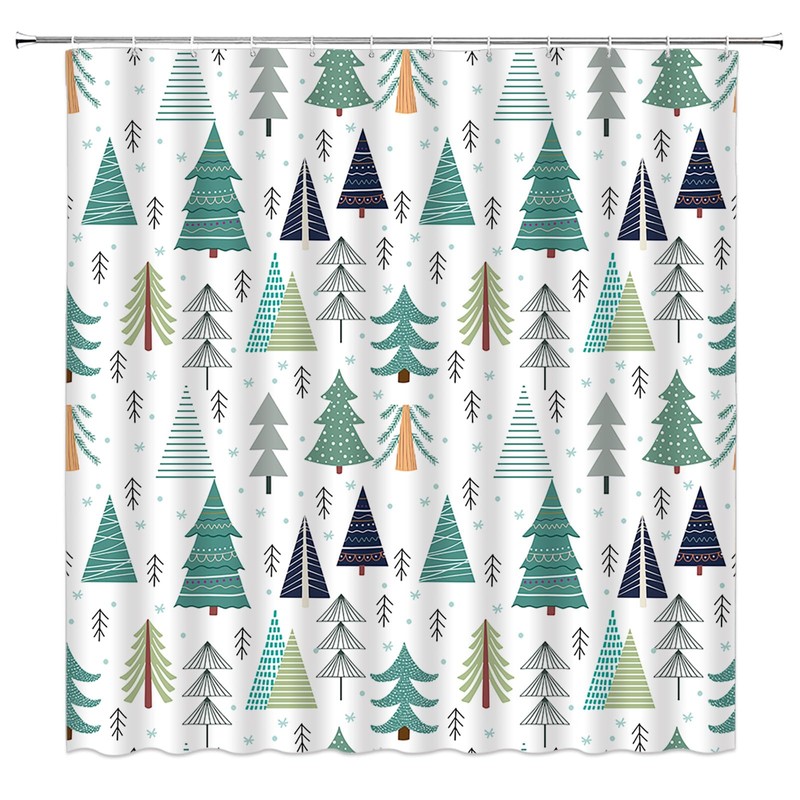 Christmas Tree Shower Curtain Green Xmas Tree Snowflake Forest Winter Holiday Fabric Curtain with Hooks for Bathroom Decor,70x70 Inch