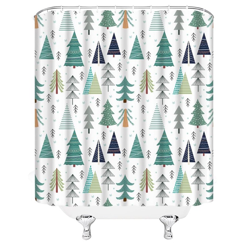Christmas Tree Shower Curtain Green Xmas Tree Snowflake Forest Winter Holiday Fabric Curtain with Hooks for Bathroom Decor,70x70 Inch