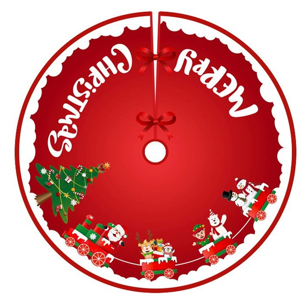 Christmas Tree Skirt 36 Inch Red White Cloth Christmas Tree Base Cover Skirts Decor for Xmas Party Holiday Home Garden (Christmas Train)