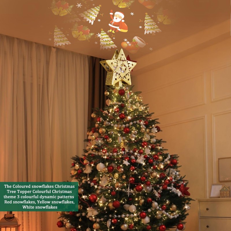 Christmas Tree Topper - Christmas Tree Topper Lighted with 3D Rotating - LED Hollow Glitter Projector - Christmas Tree Topper for Christmas Tree Decorations (Projection Christmas Patterns)