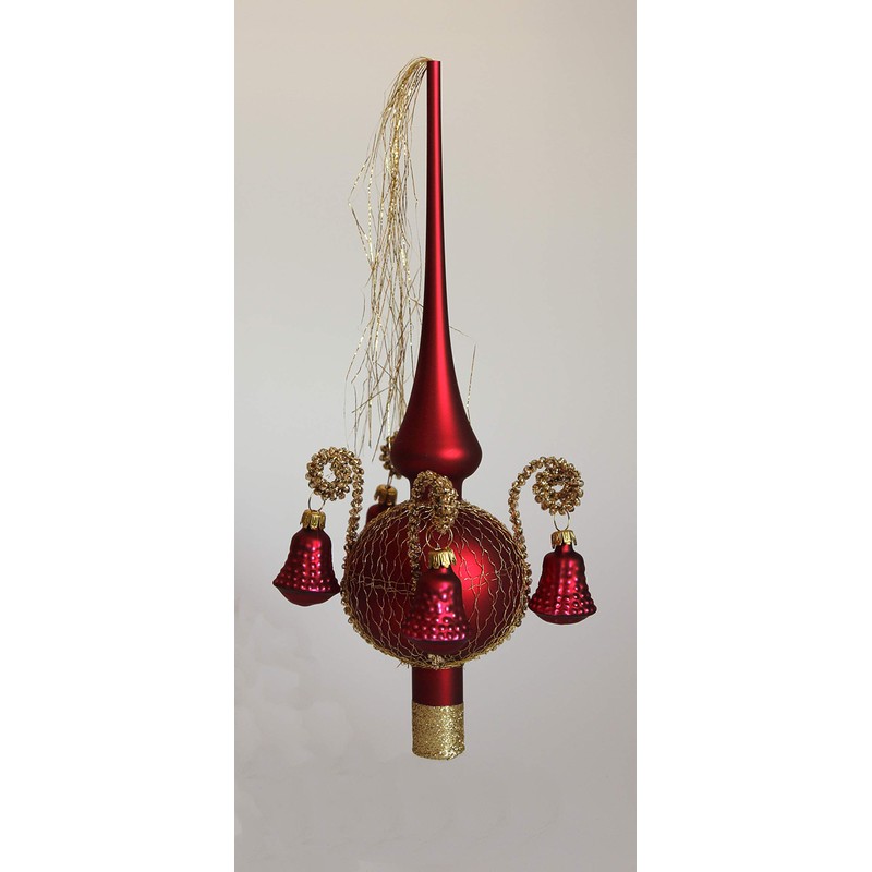 Christmas Tree Topper with Shaped Bell Dark Red Matt Surrounded Length Approx. 28 cm Diameter 7 cm Mouth-Blown Hand-Decorated Leonian Wire Lauschaer Glas
