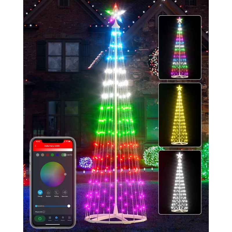 - Music Mode: Built-in high sensitivity mic, dance the night away as the led string lights react in real time to your songs. With multi color outdoor christmas tree for yard, creating a vibrant experience to liven up any party or get-together