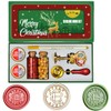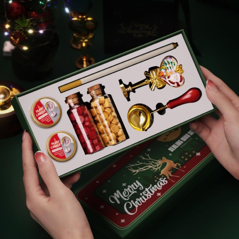 - Christmas Wax Seal Stamp Kit: The wax seal kit comes with 1Pcs Christmas sealing wax stamp, 2 bottles wax seal beads in red and gold colors, 160pcs in total. 1Pcs wax seal spoon, 1Pcs gold wax seal pen for coloring the wax seals,2Pcs high-quality candles and upscale christmas gift box